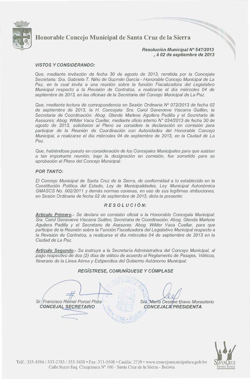 Resolución Municipal Nº 547-2013