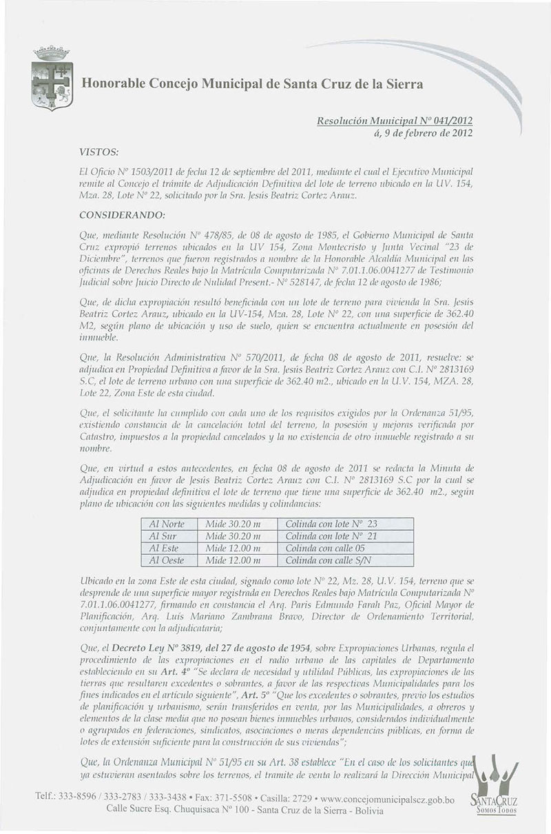 Resolución Municipal Nº 41-2012