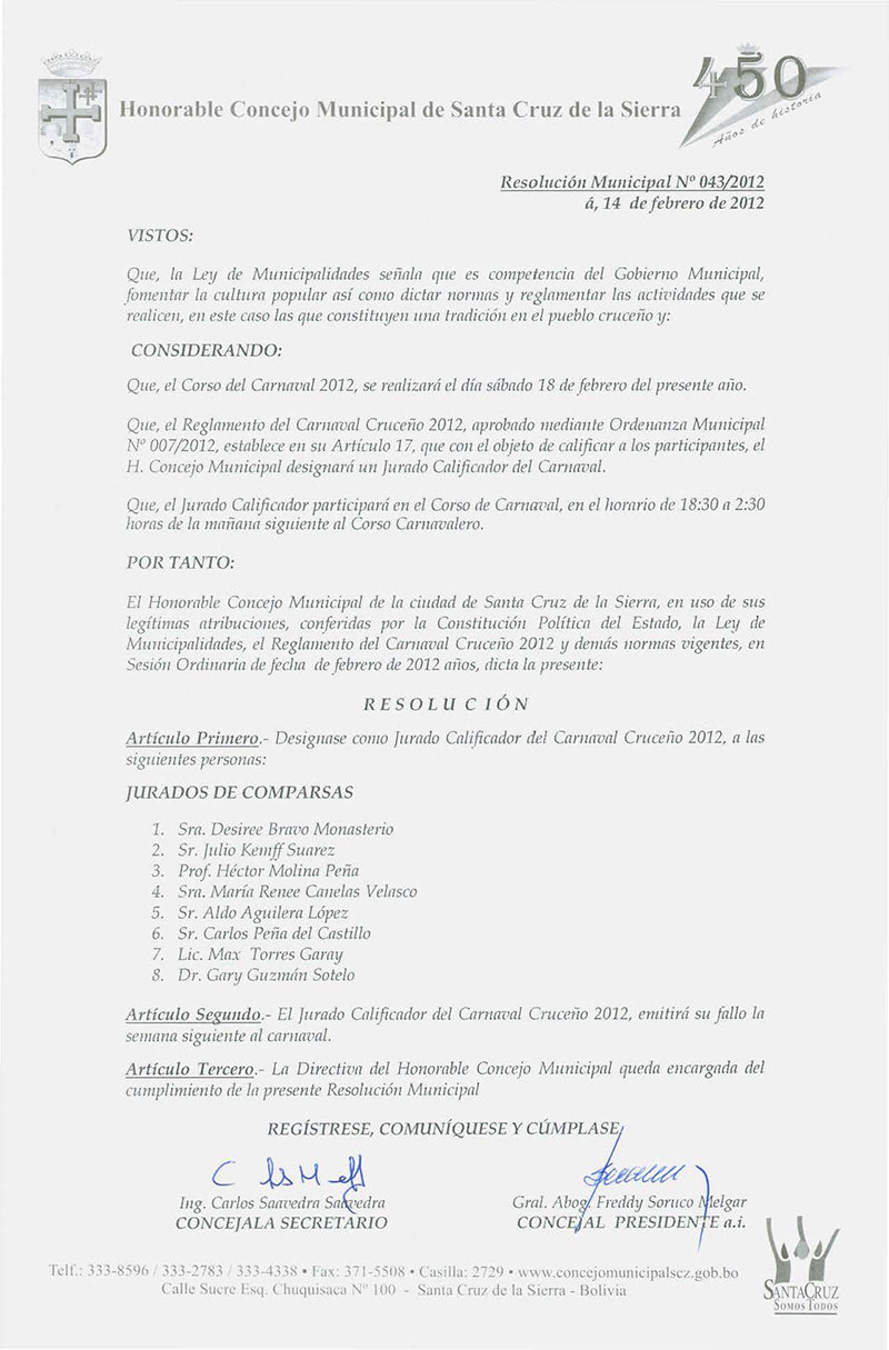 Resolución Municipal Nº 43-2012