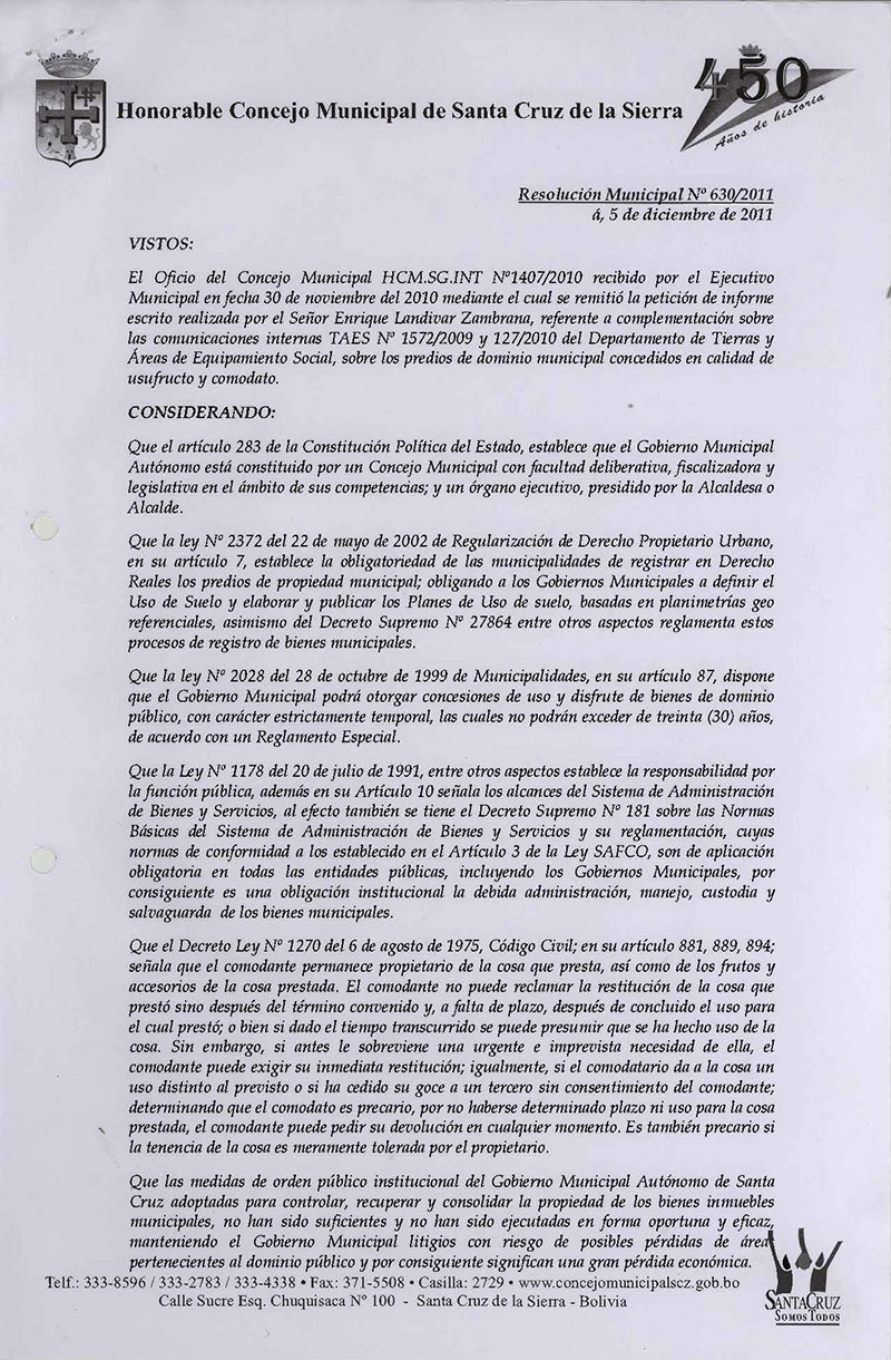 Instruye al Ejecutivo Municipal desarrollar las acciones necesarias para fortalecer el Proyecto de Regularización de Terrenos Municipales y de todos aquellos que fueron otorgados por la municipalidad en calidad de comodato y/o usufructo a personas individuales o colectivas.
