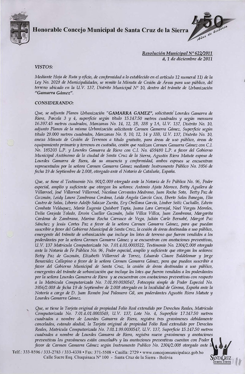 Aprueba la Minuta de cesión de terrenos a título gratuito para áreas de uso público, ubicado en la U.V. 137, Distrito Municipal No. 10, dentro del trámite de urbanización “GAMARRA GAMEZ”.