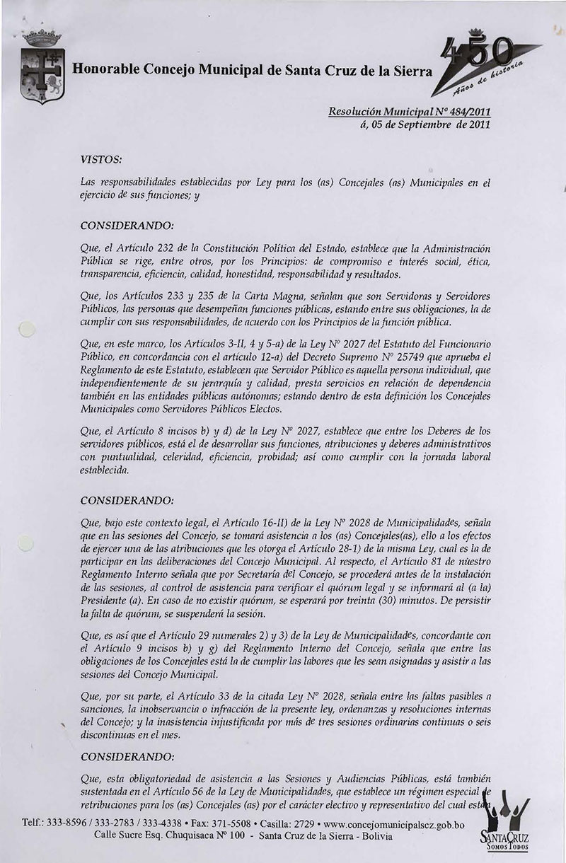 Resolución Municipal Nº 484-2011