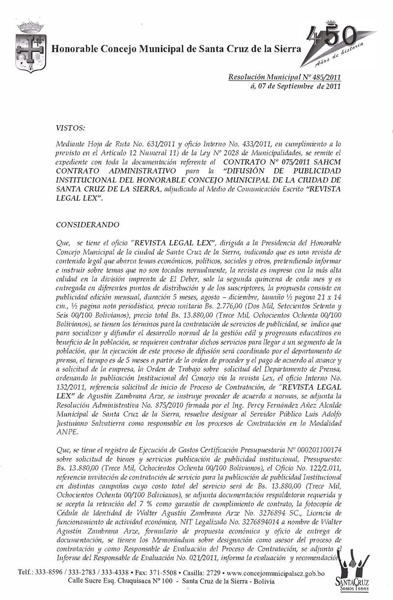 Resolución Municipal Nº 485-2011