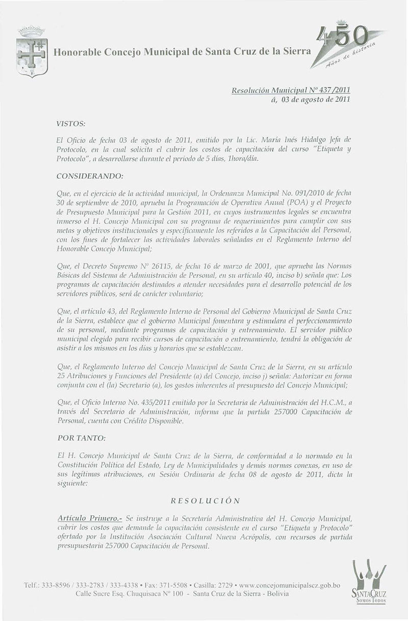 Resolución publicada en la Gaceta de Agosto y Septiembre 2011