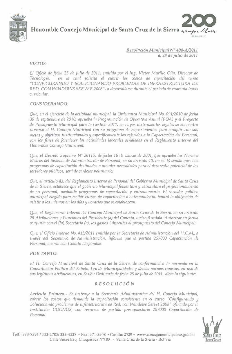 Resolución Municipal Nº 404-2011