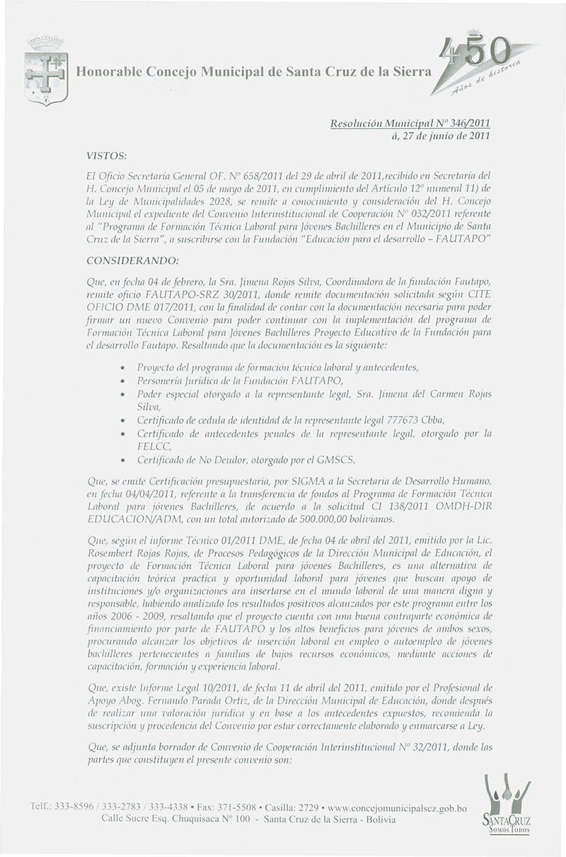 Resolución Municipal Nº 346-2011