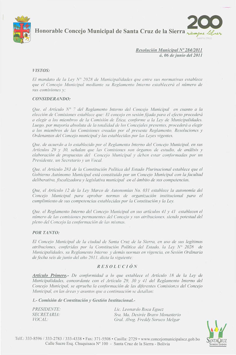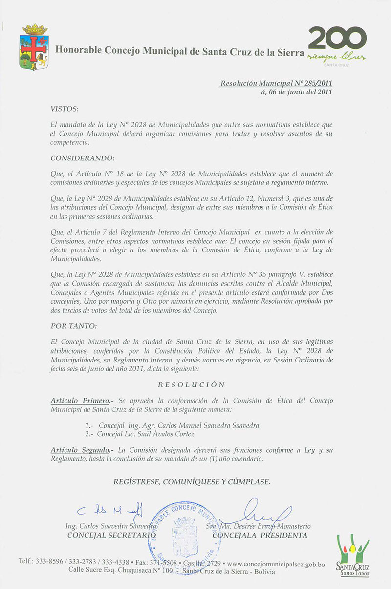 Aprueba la conformación de la Comisión de Ética del Concejo Municipal de Santa Cruz de la Sierra.