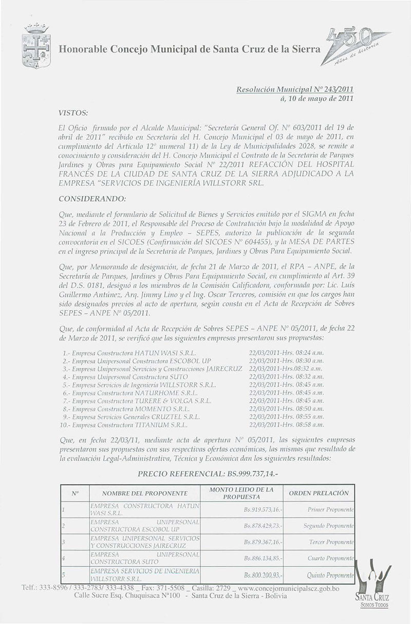 Resolución Municipal Nº 243-2011
