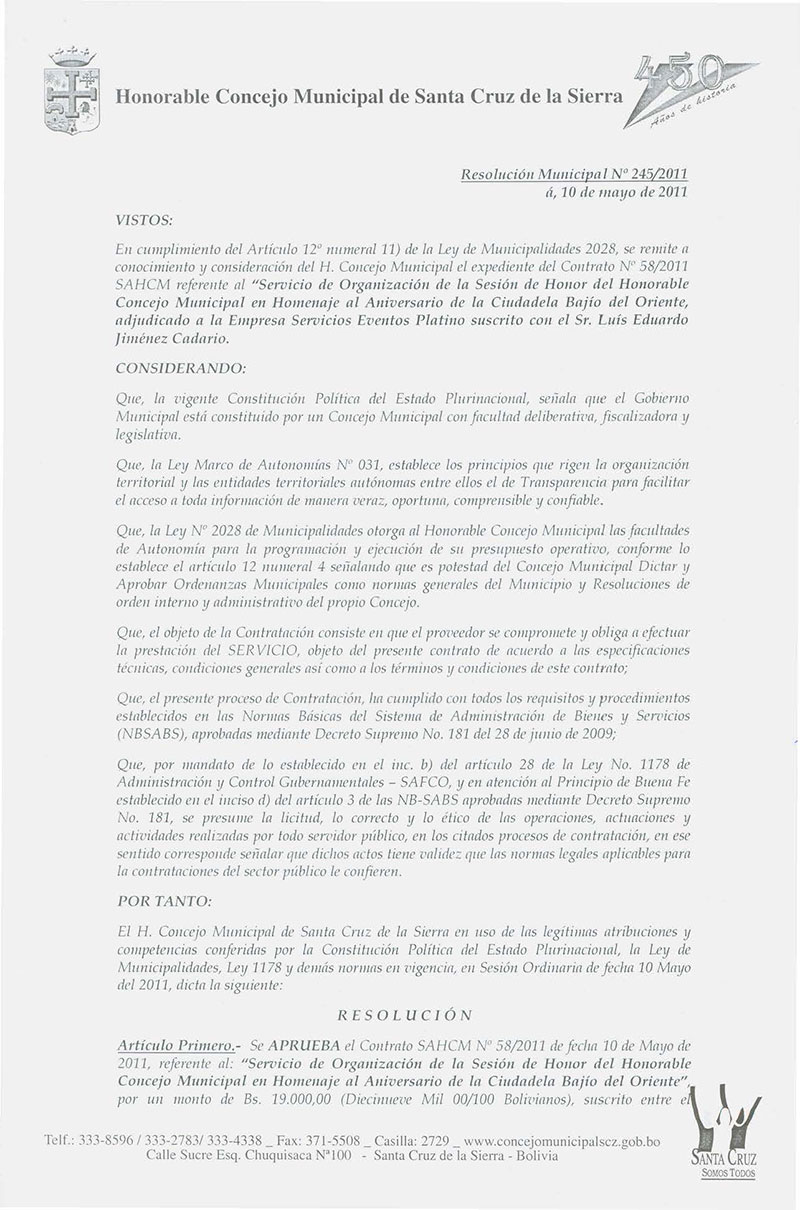 Resolución Municipal Nº 245-2011