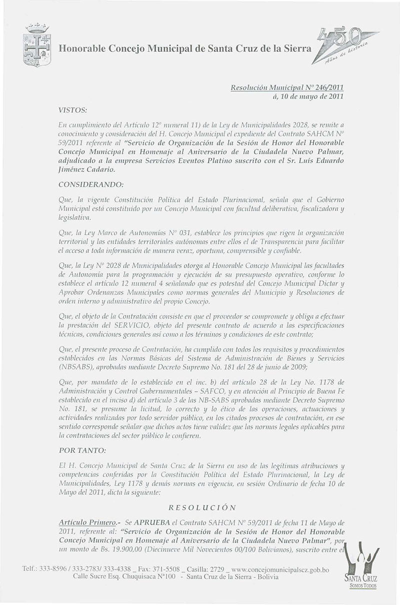 Resolución Municipal Nº 246-2011