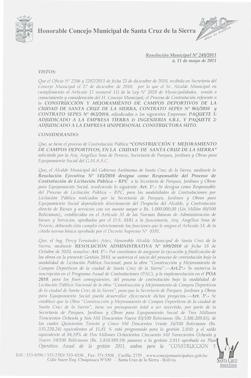 Resolución Municipal Nº 249-2011