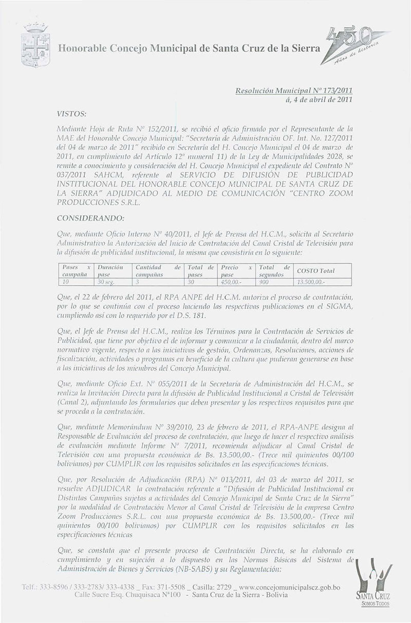 Resolución Municipal Nº 173-2011