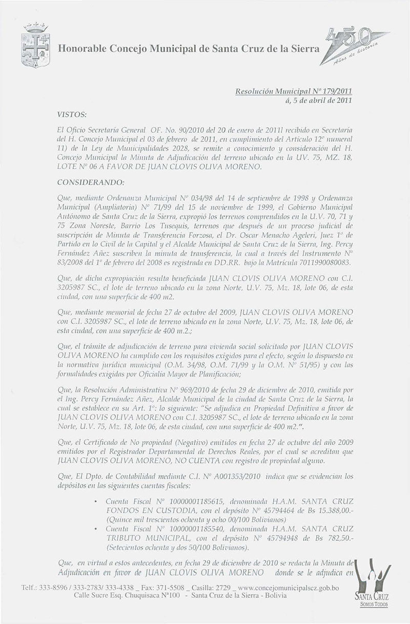 Resolución Municipal Nº 179-2011