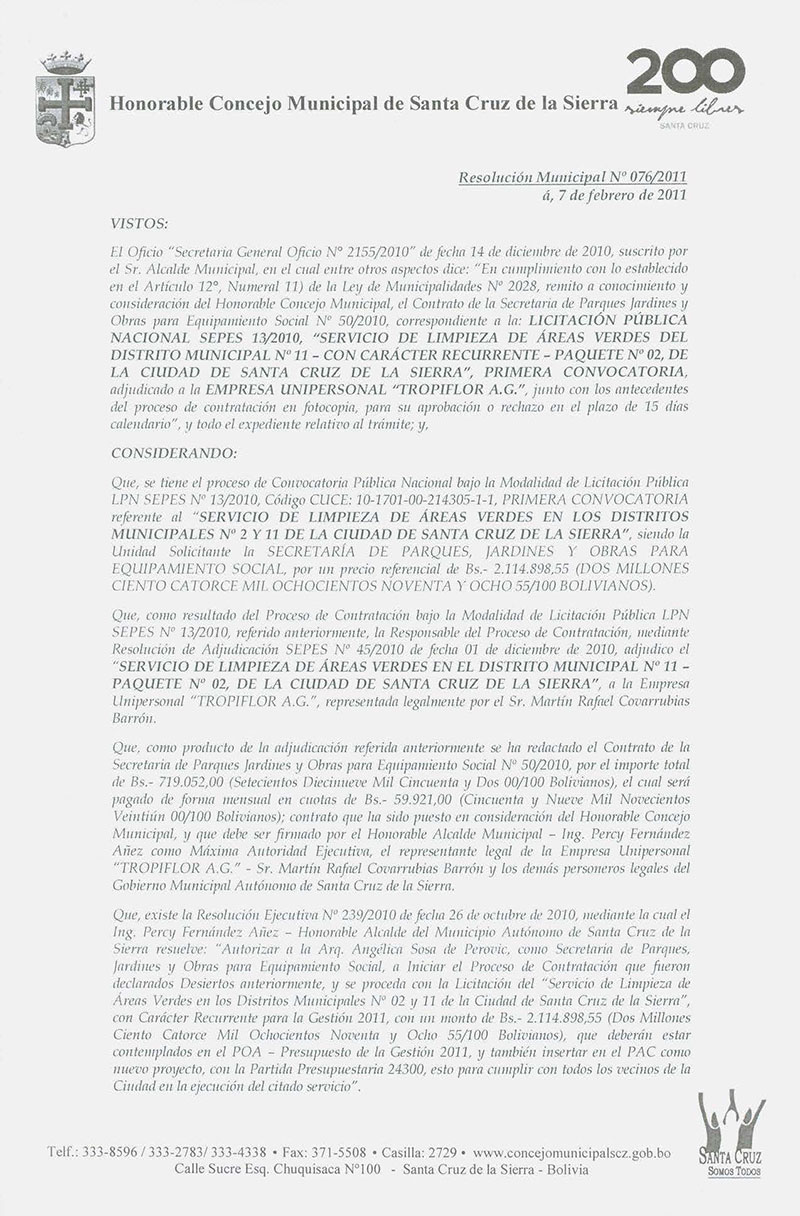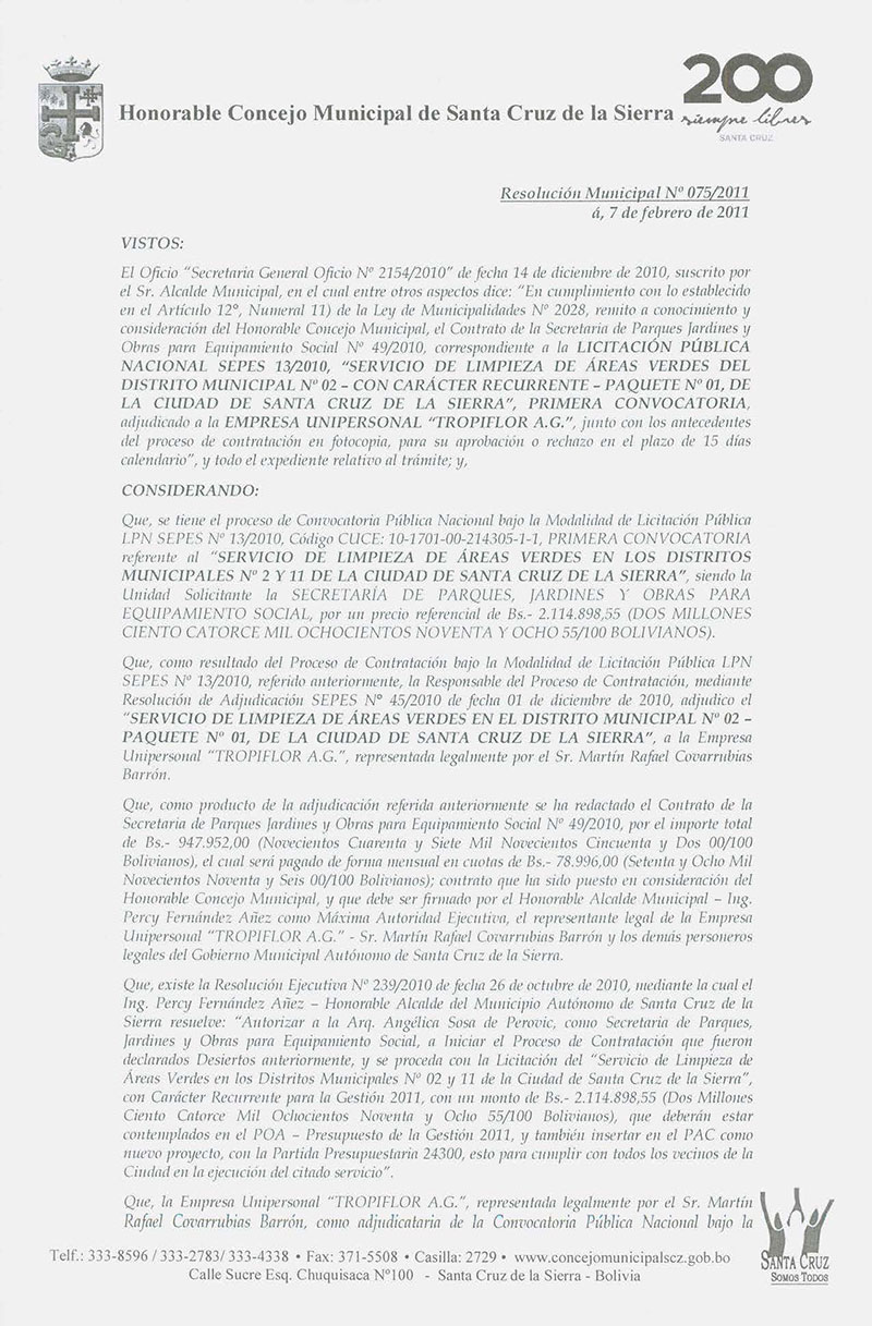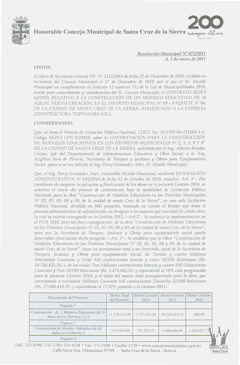 Aprueba el Contrato OMOP N° 54/2010, referente a la “CONSTRUCCIÓN DRENAJE AV. EL CRISTO (4TO. Y 5TO. ANILLO)” DE LA CIUDAD DE SANTA CRUZ.