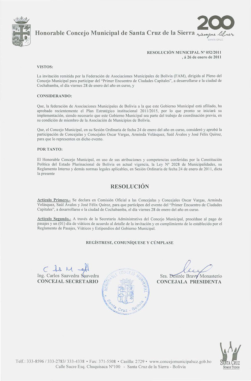 Resolución Municipal Nº 52-2011