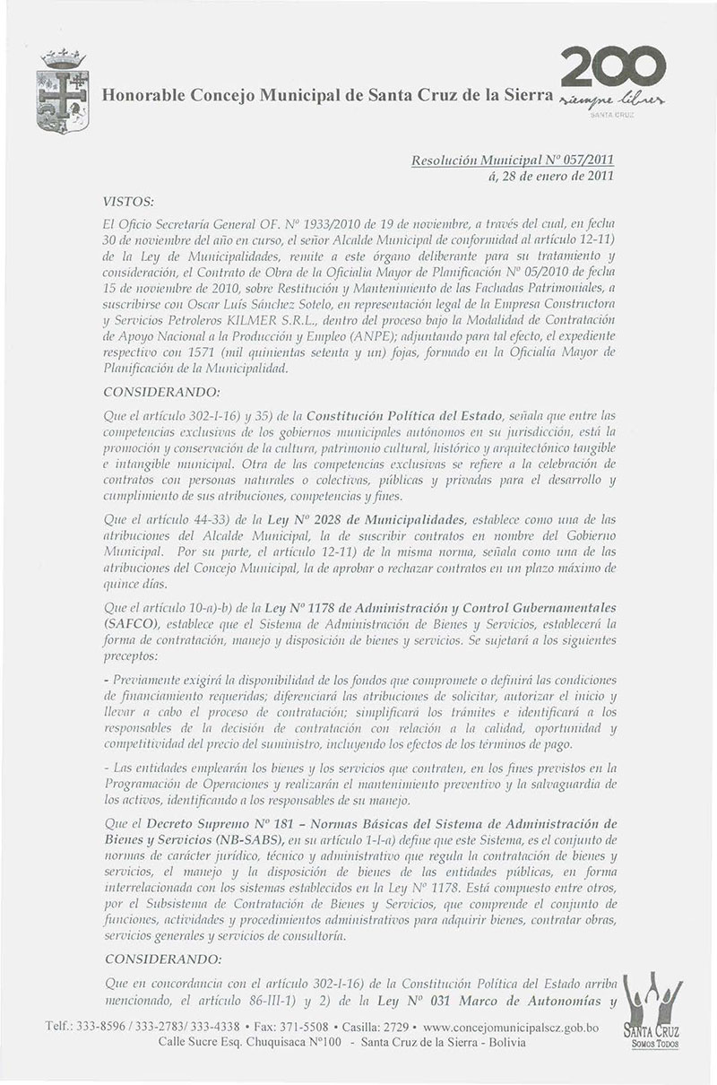 Resolución Municipal Nº 57-2011