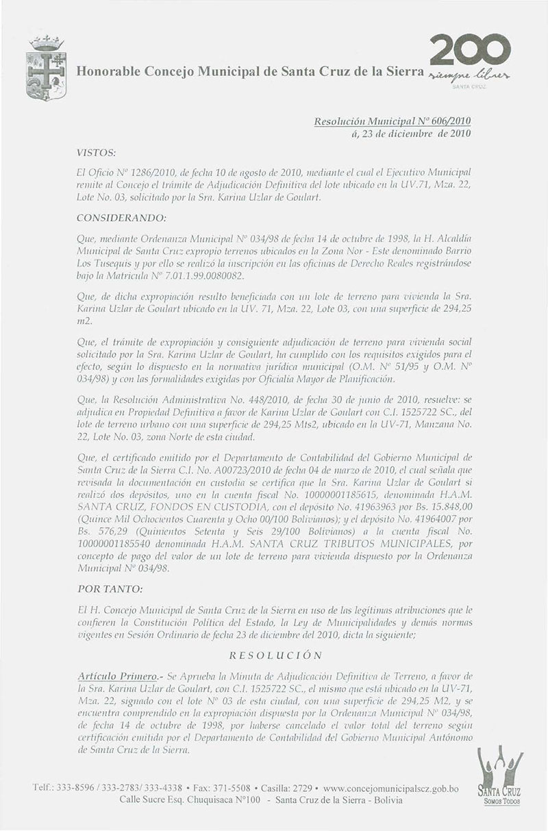 Resolución Municipal Nº 606-2010