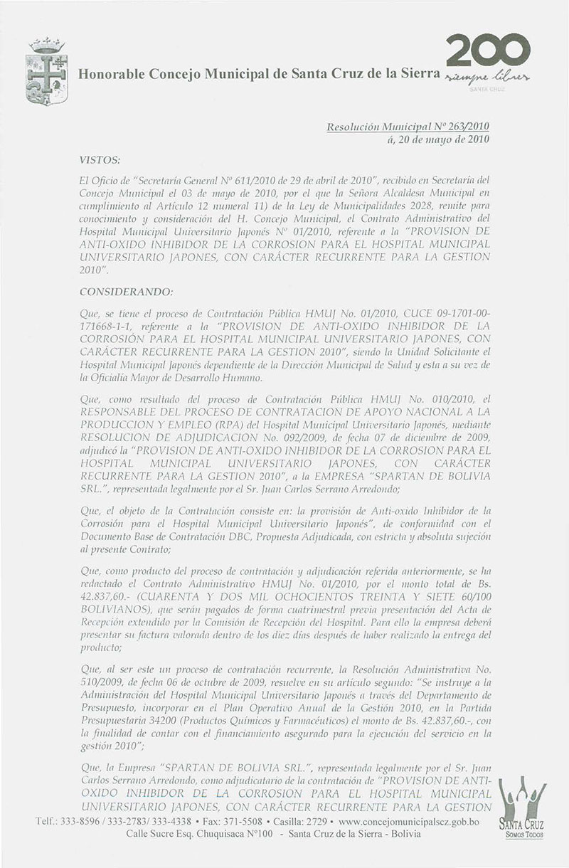Aprueba el Contrato HMUJ Nº 001/2010 referente a la Provisión de Anti-óxido Inhibidor para el Hospital Japonés.