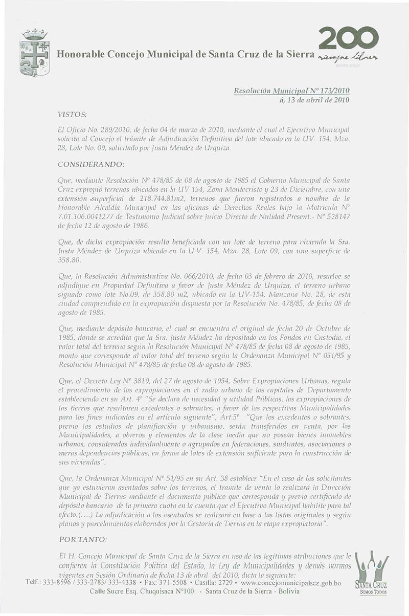 Resolución Municipal Nº 173-2010