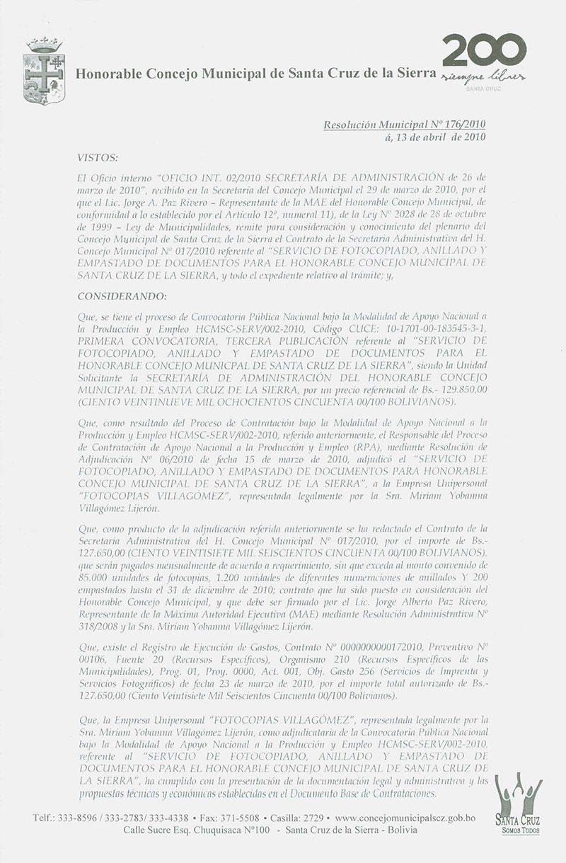 Resolución Municipal Nº 176-2010