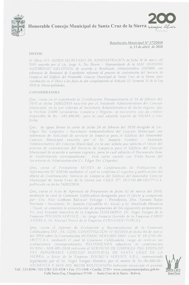 Resolución Municipal Nº 177-2010