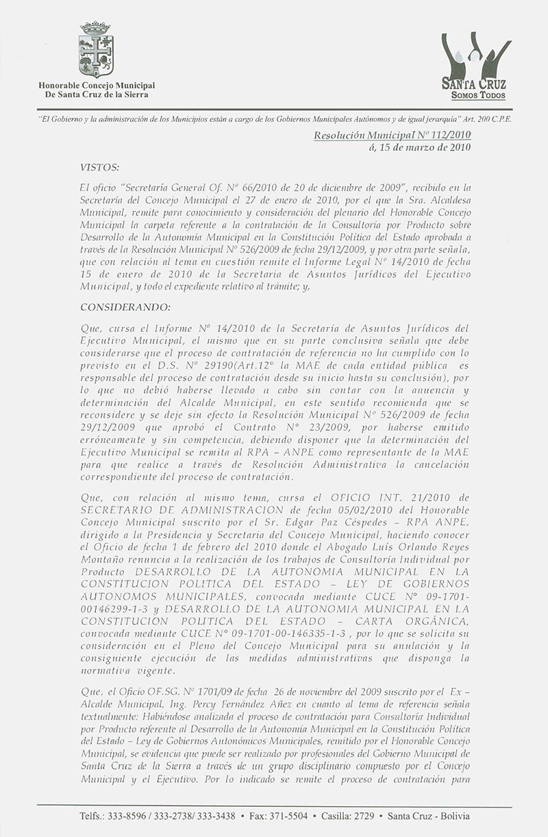 Resolución Municipal Nº 112-2010