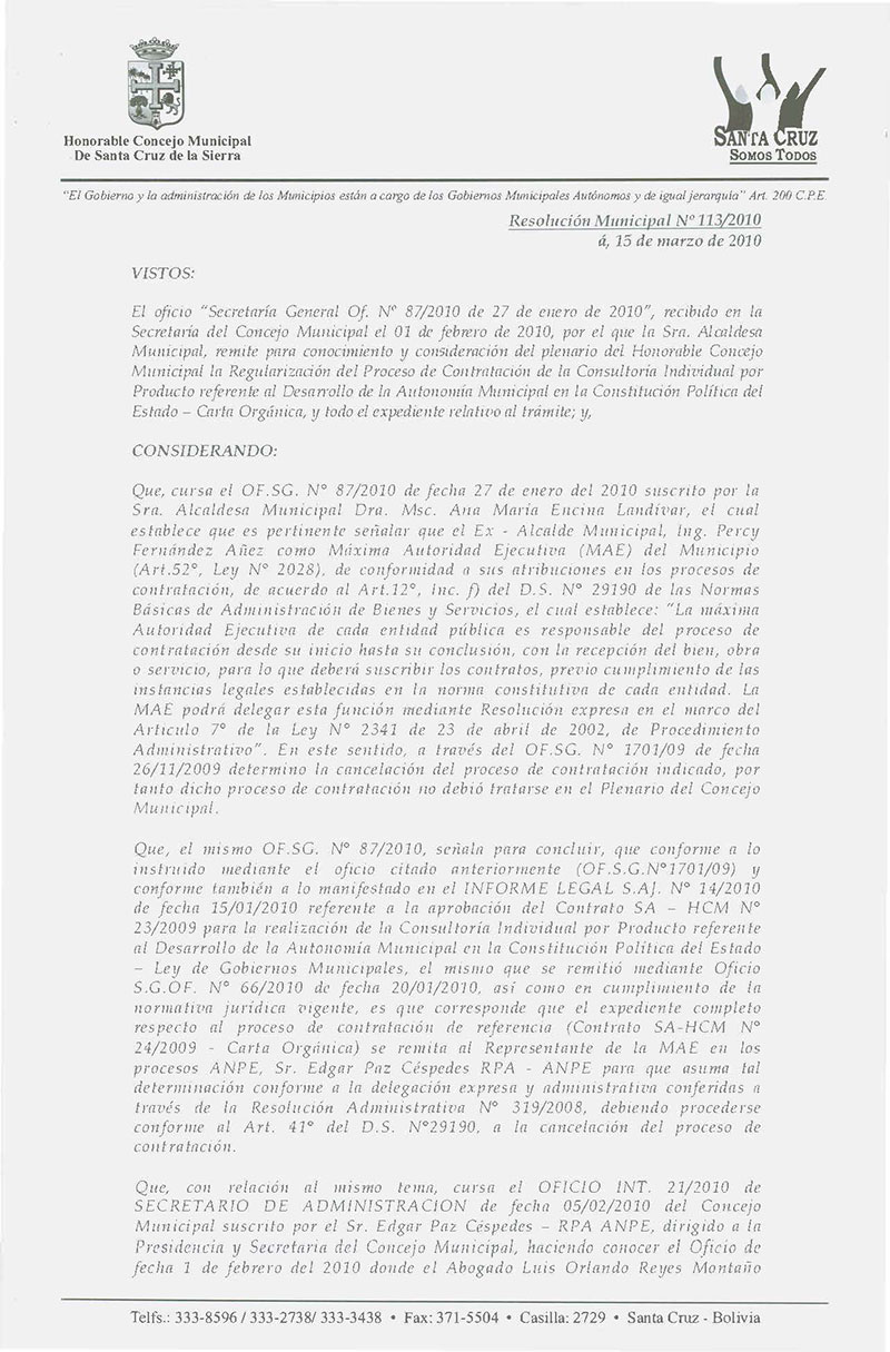 Resolución Municipal Nº 113-2010