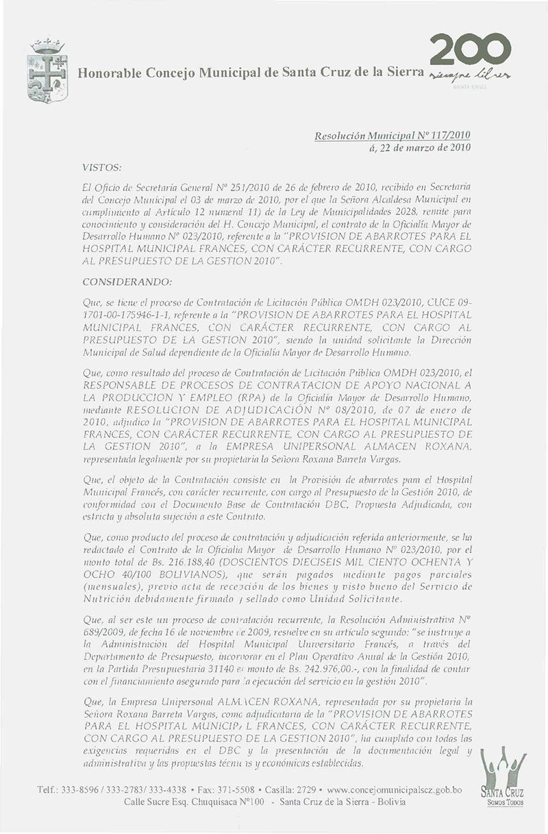 Resolución Municipal Nº 117-2010