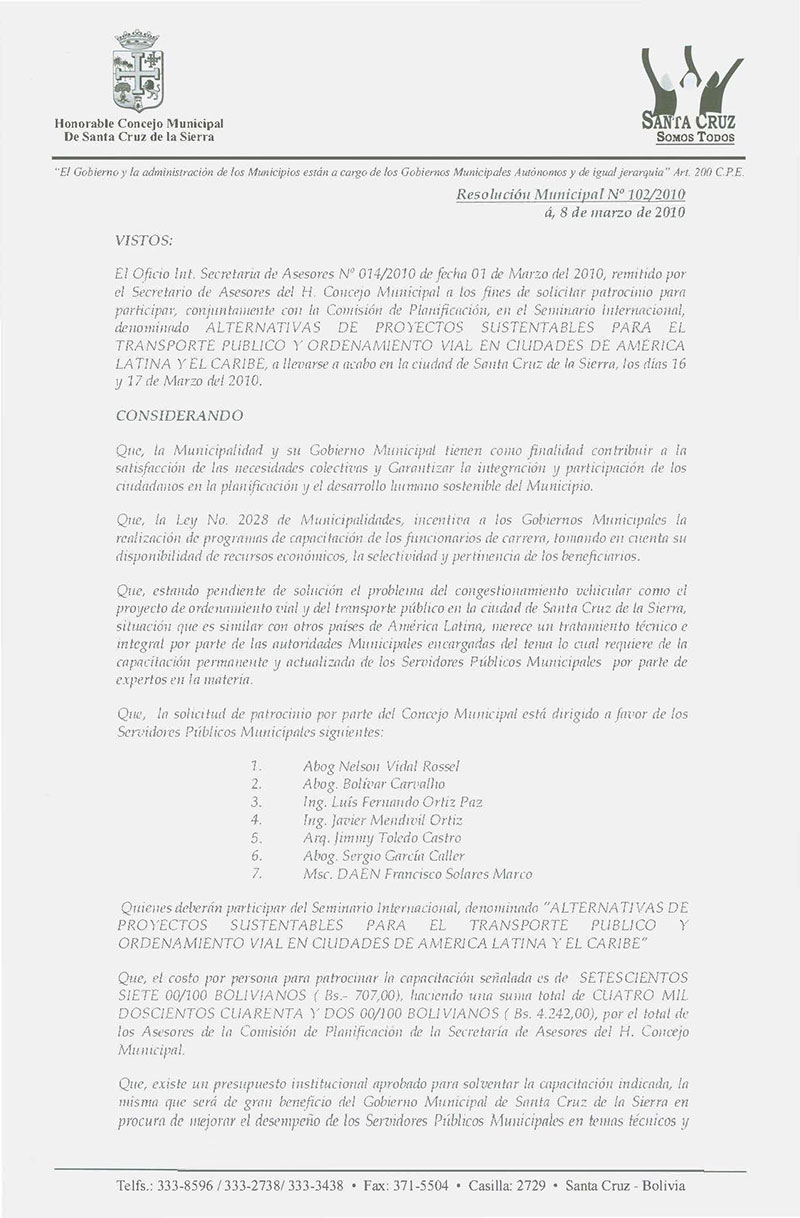 Resolución Municipal Nº 102-2010
