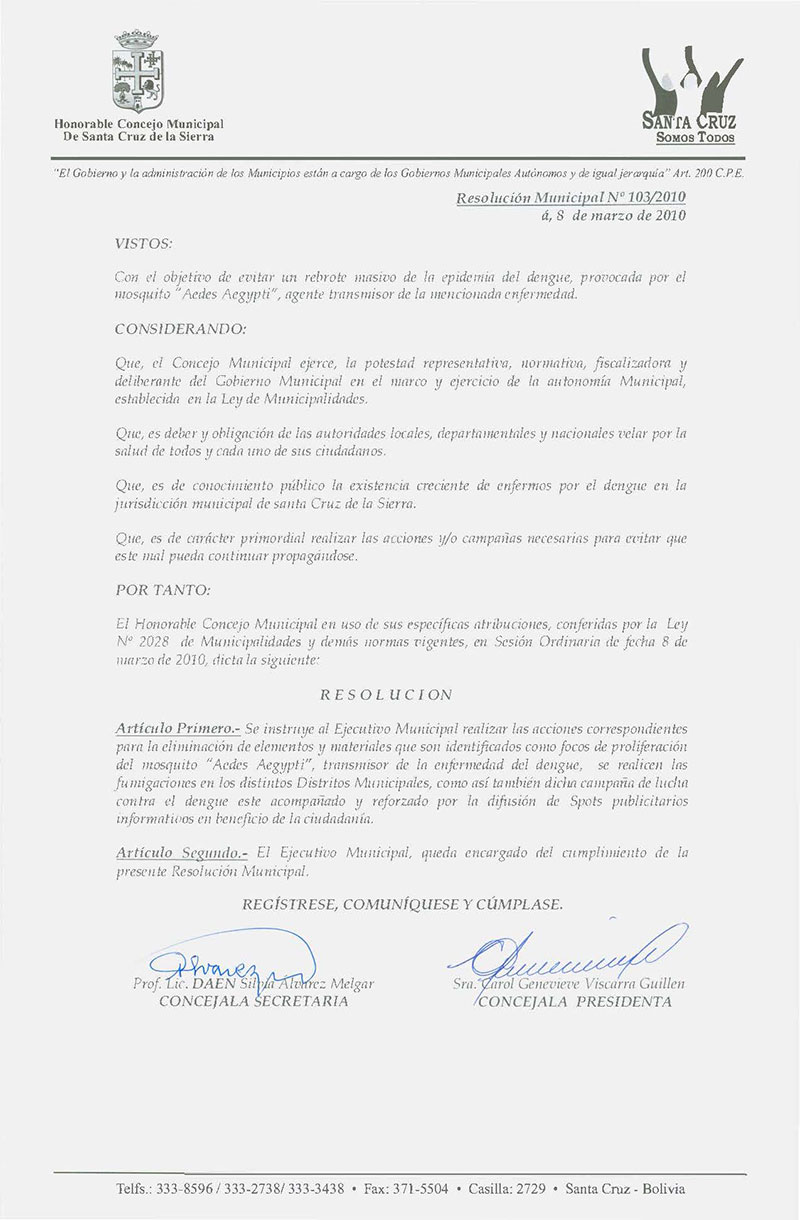 Resolución Municipal Nº 103-2010