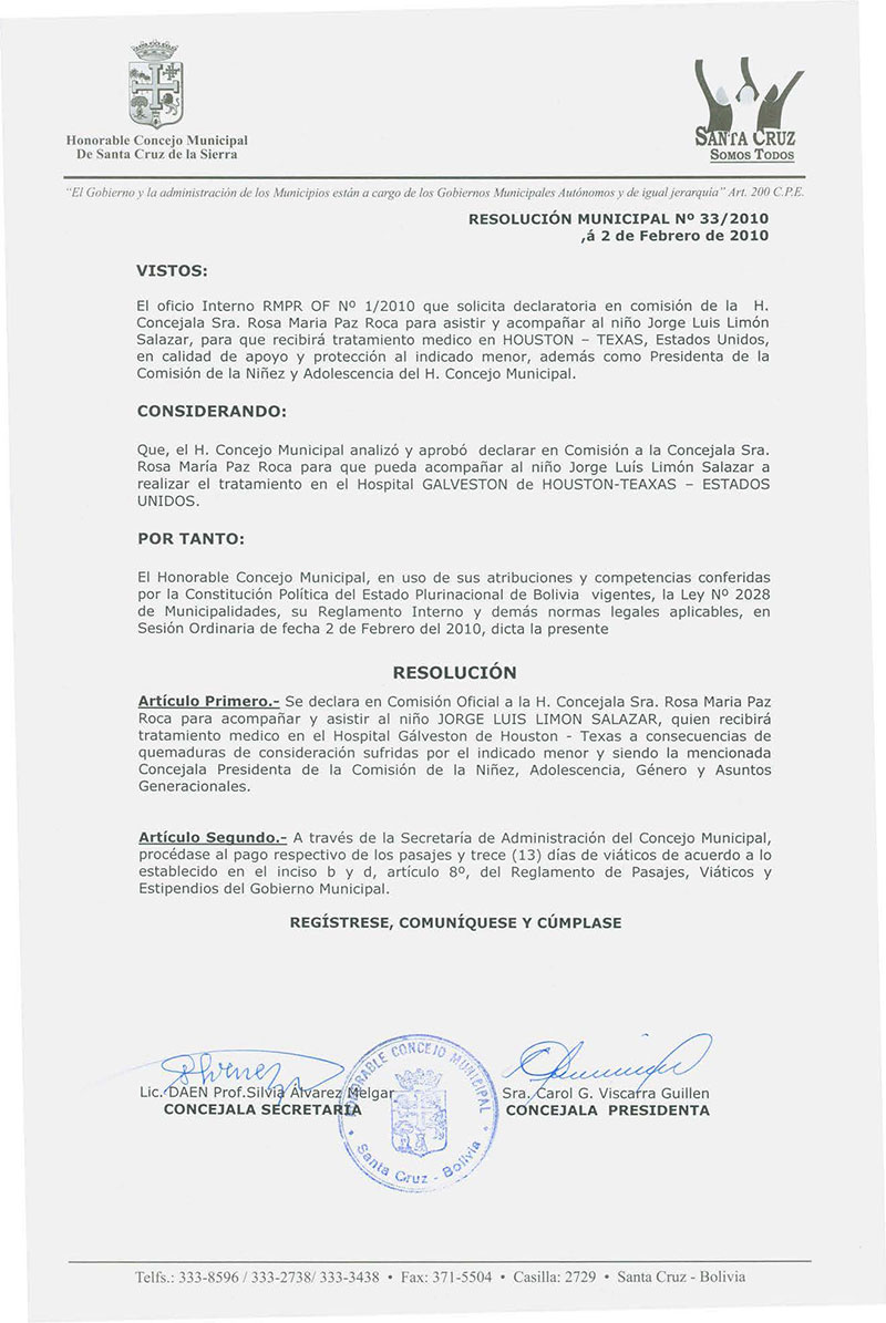 Declara en comisión y aprueba el viaje a E.E.U.U. de la Concejal Rosa María Paz, para asistir al niño Jorge Luis Limón Salazar.