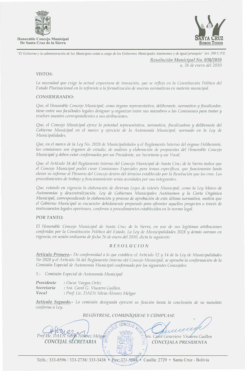 Aprueba la Conformación de la Comisión Especial de Autonomía Municipal.