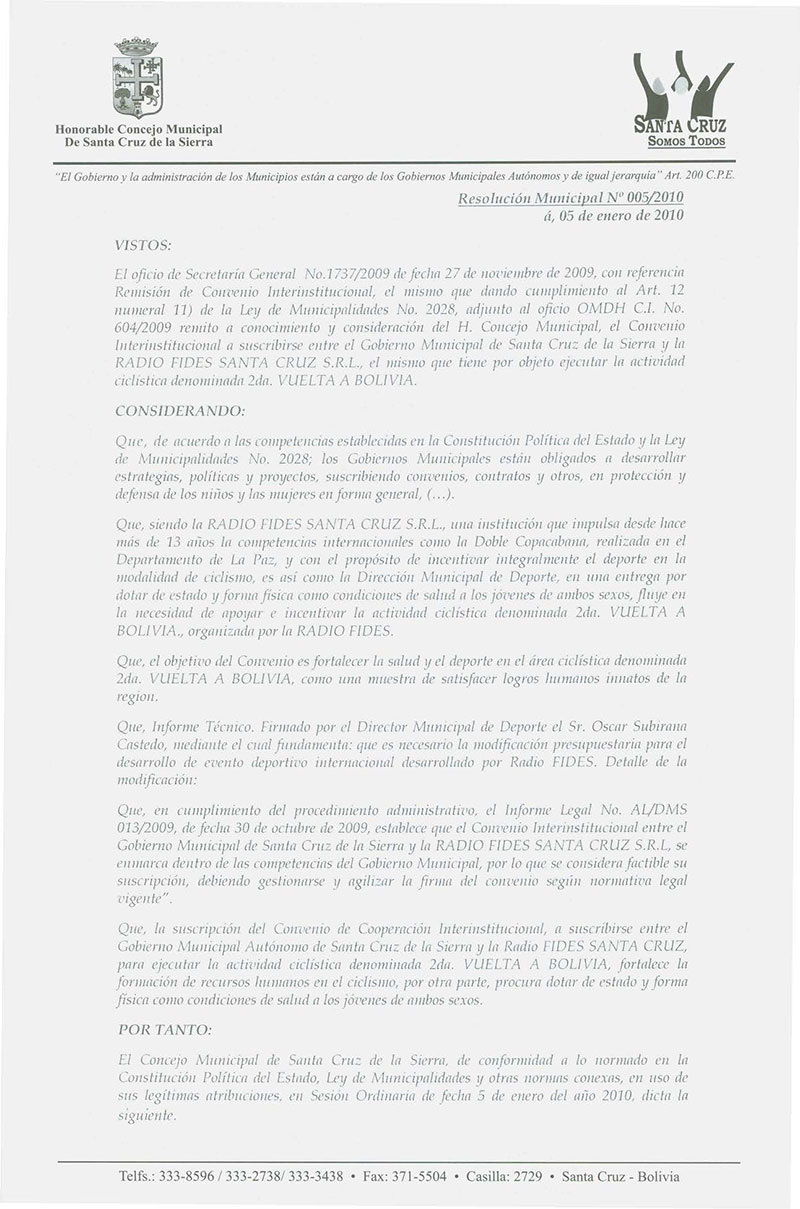 Aprueba el Convenio de Cooperación Interinstitucional, entre el Gobierno Municipal y la Radio FIDES SRL.