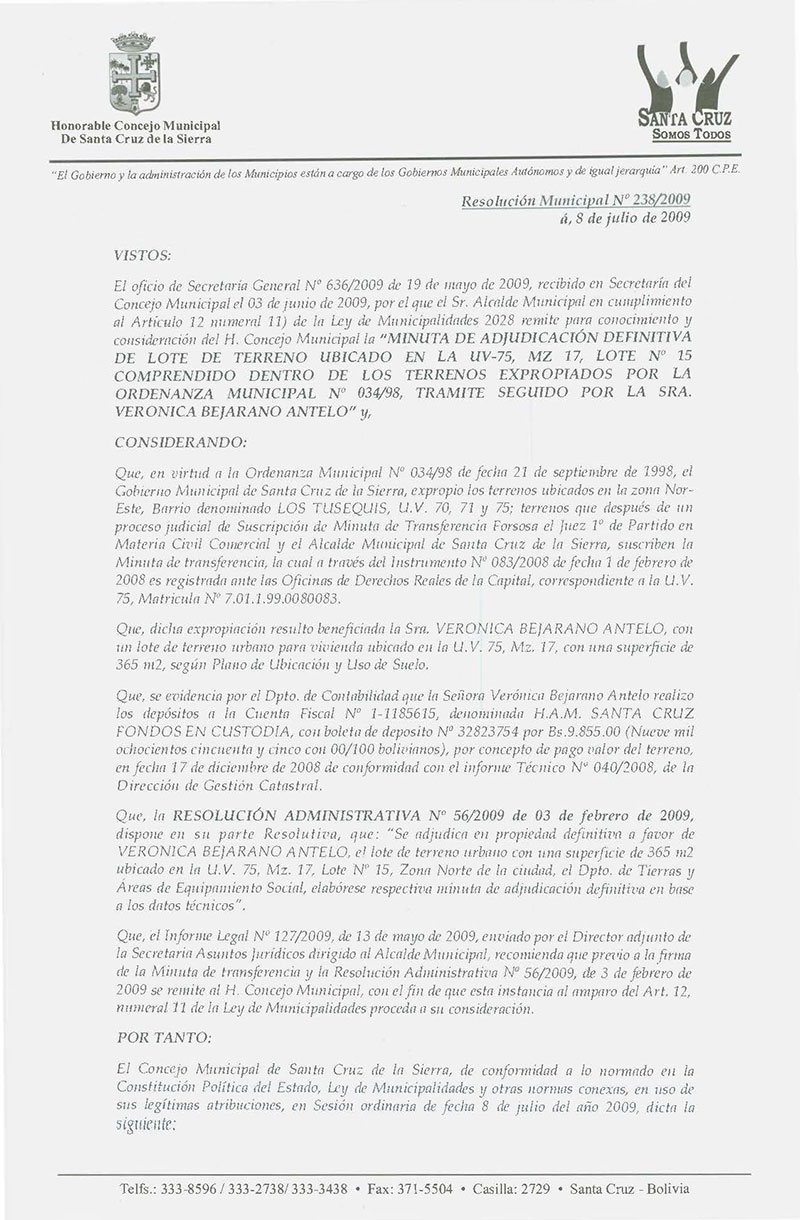 Resolución Municipal Nº 238-2009