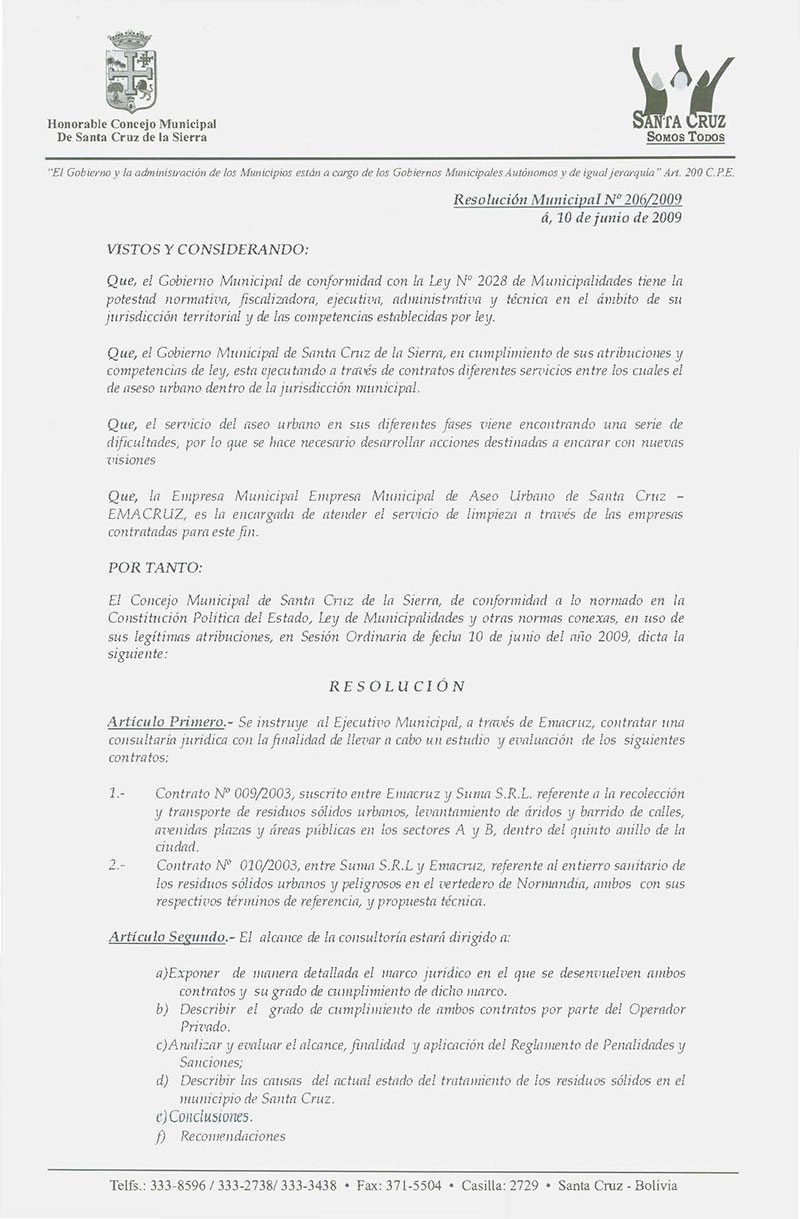 Instruye al Ejecutivo Municipal, a través de Emacruz, contratar una consultoría jurídica con la finalidad de llevar a cabo un estudio y evaluación de los contratos expuestos en la presente Resolución Municipal.
