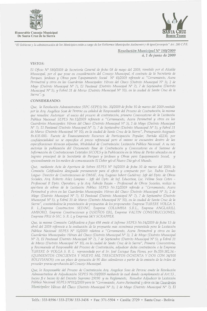 Resolución Municipal Nº 180-2009