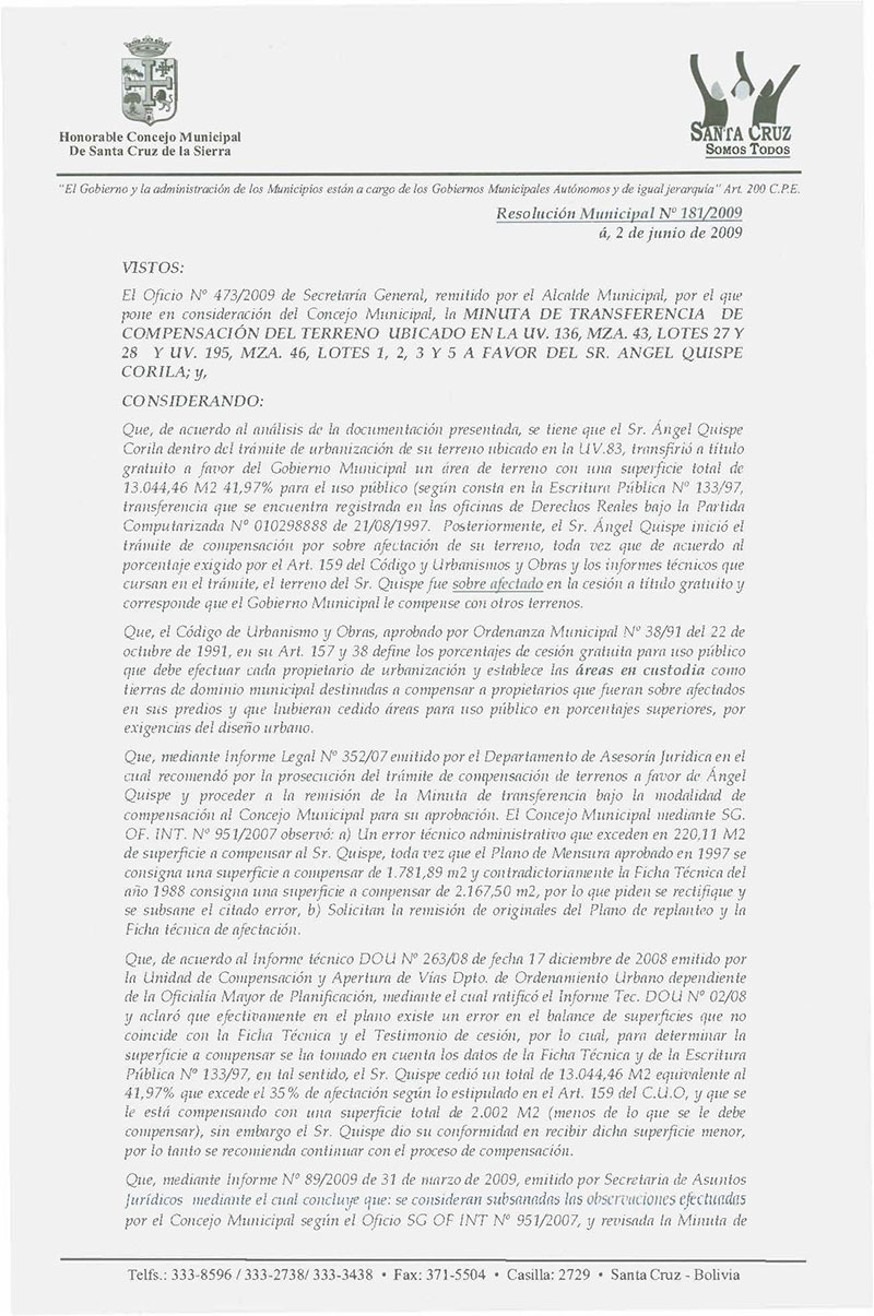 Resolución Municipal Nº 181-2009