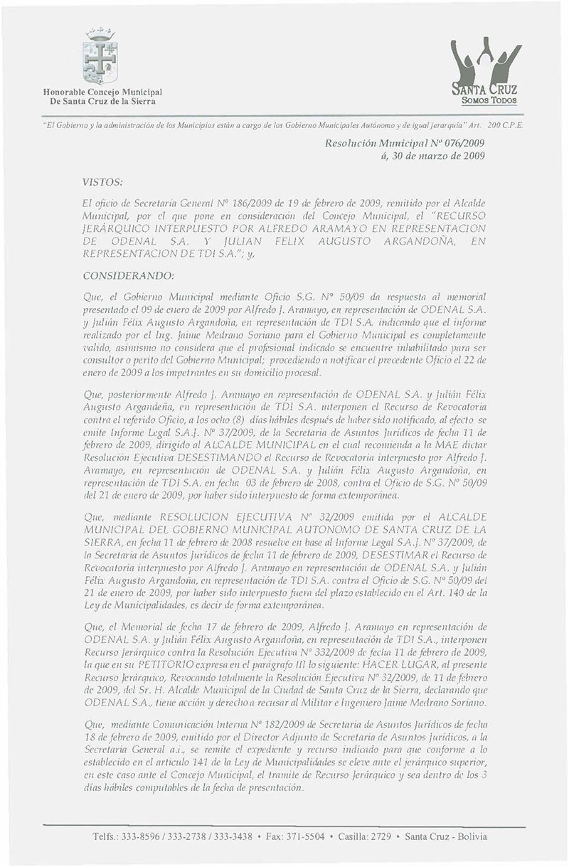 Confirma la Resolución Ejecutiva N° 32/2009, del 11 de febrero del 2009, emitida por el Alcalde Municipal del Gobierno Autónomo de Santa Cruz de la Sierra.