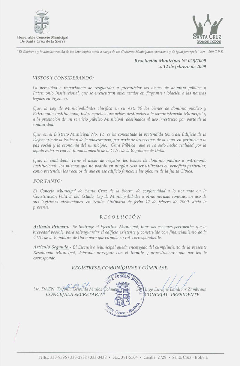 Instruye al Ejecutivo Municipal, tome las acciones pertinentes y a la brevedad posible, para salvaguardar el edificio existente y construido con financiamiento de la GVC de la República de Italia para que cumpla su rol correspondiente.