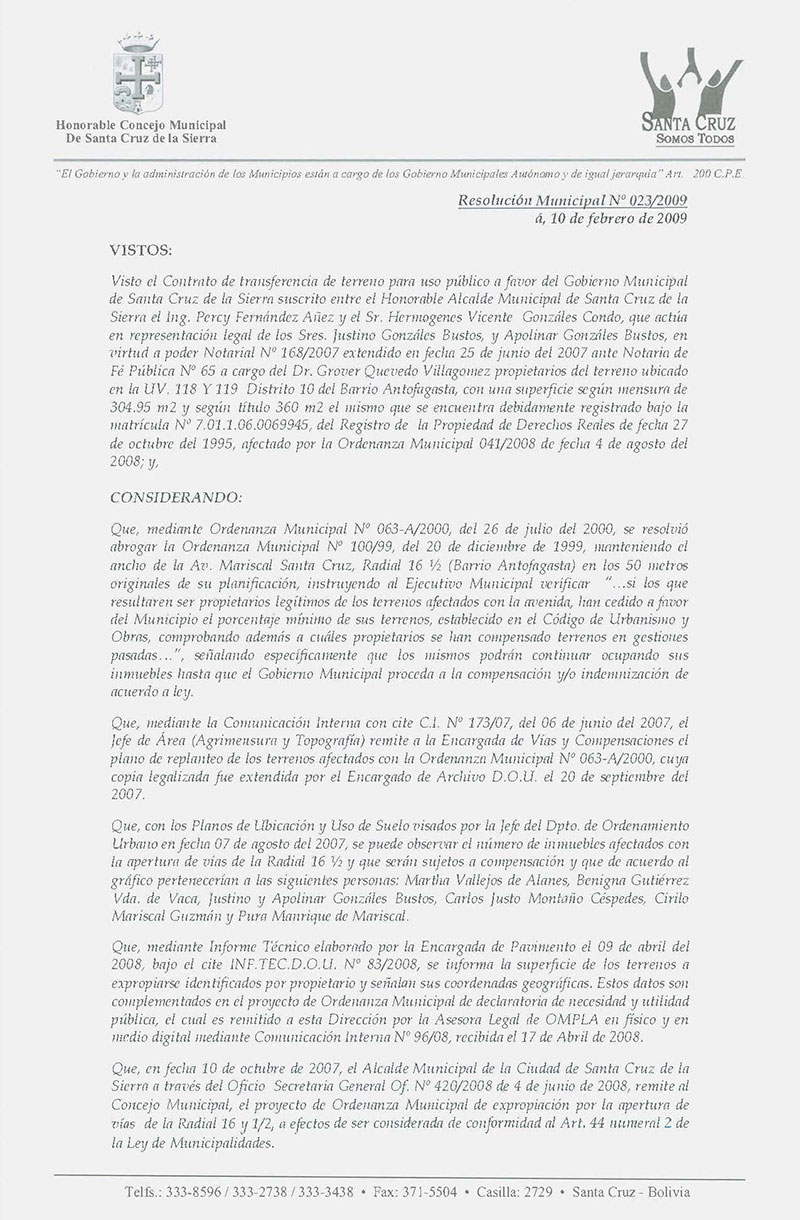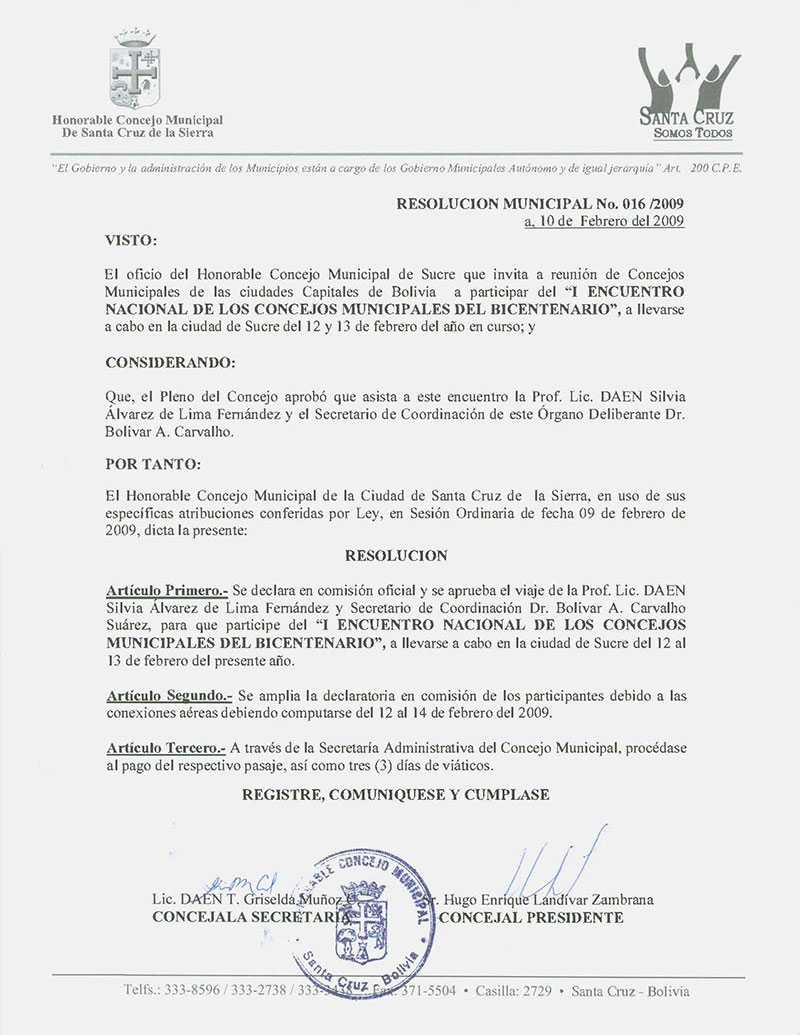 Resolución Municipal Nº 16-2009