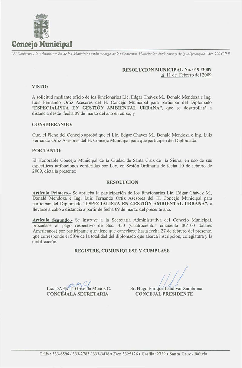 Resolución Municipal Nº 19-2009