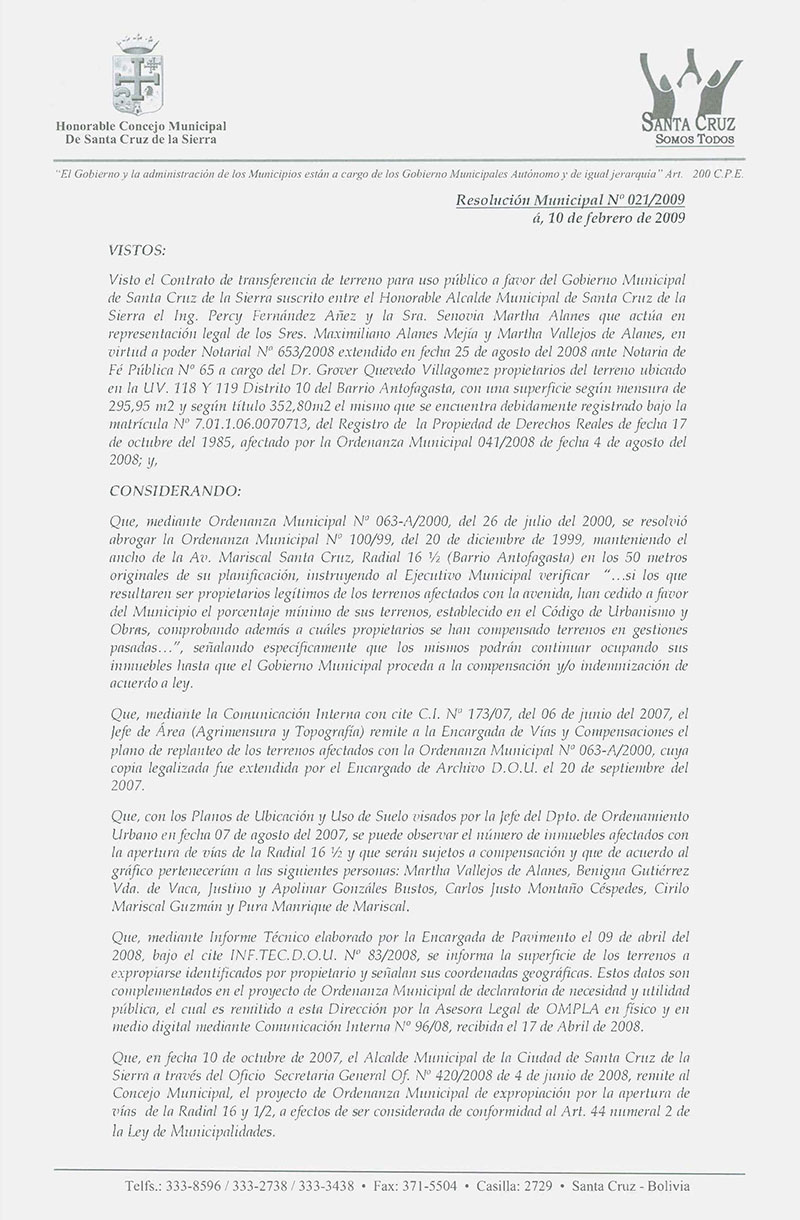 Resolución Municipal Nº 21-2009