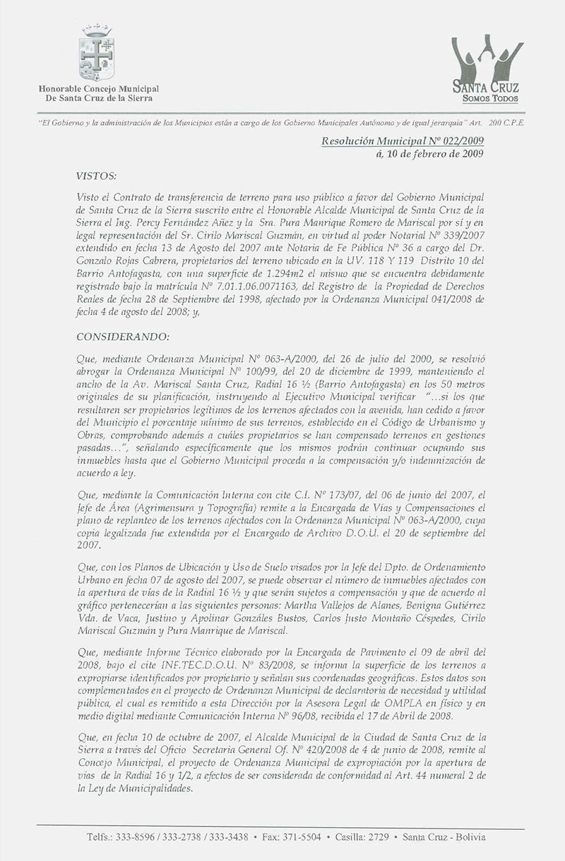 Resolución Municipal Nº 22-2009