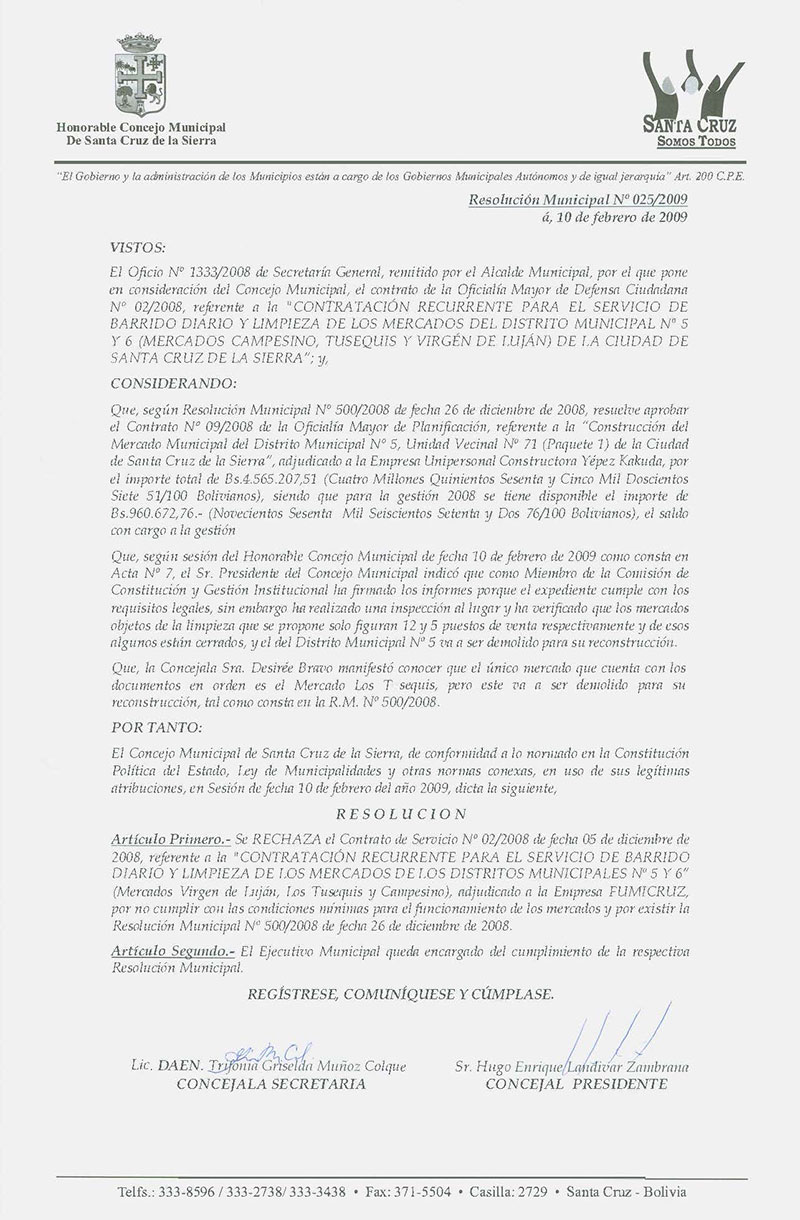 Resolución Municipal Nº 25-2009