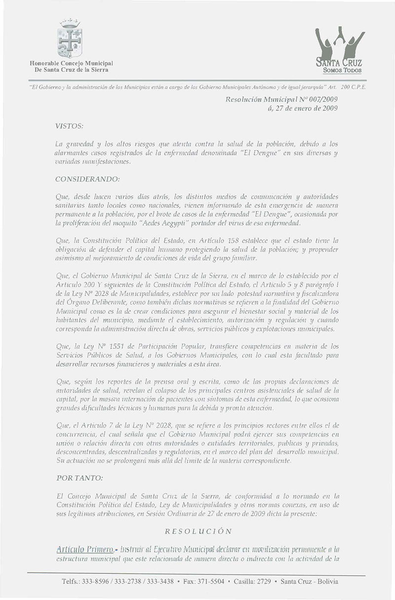 Instruye al Ejecutivo Municipal declara en movilización permanente a la estructura municipal que este relacionada de manera directa o indirecta con la actividad de la salud pública , como así también con otras entidades del sector ya sea pública y/o privada, considerando las necesidades que implica afrontar la contingencia producida por la enfermedad del dengue.