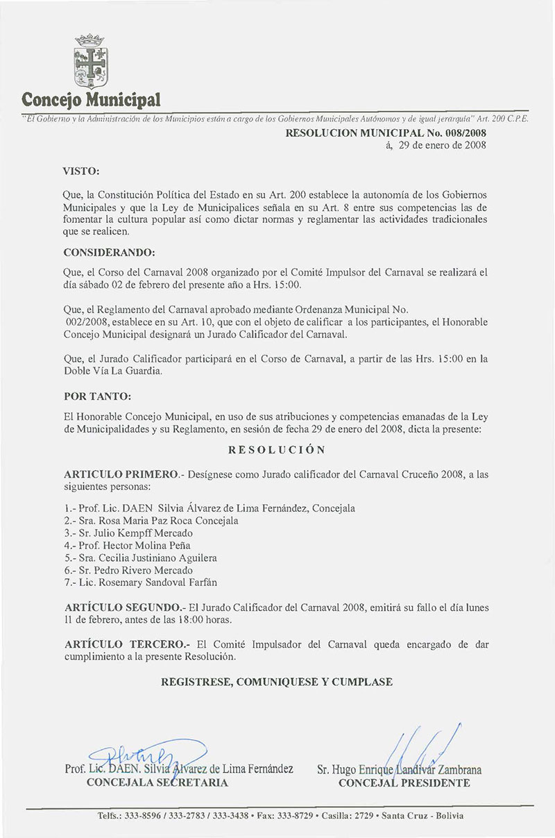 Designación del Jurado Calificador del Carnaval Cruceño 2008.