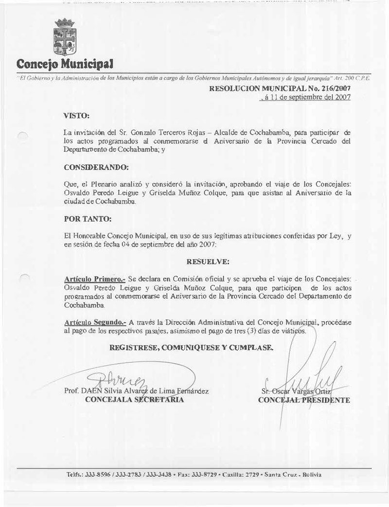 Resolución Municipal Nº 216-2007