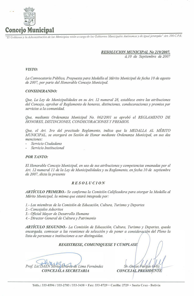 Resolución Municipal Nº 219-2007