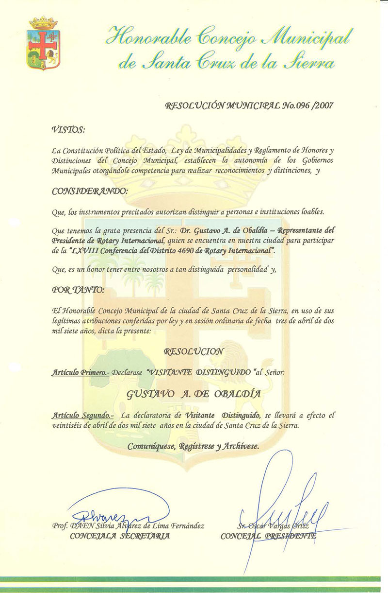 Declara "Visitante Distinguido" al Señor Gustavo A. de Obaldia, Representante del Presidente de Rotary Internacional, quien participa de la LXVIII Conferencia del Distrito 4690 de Rotary Internacional.
