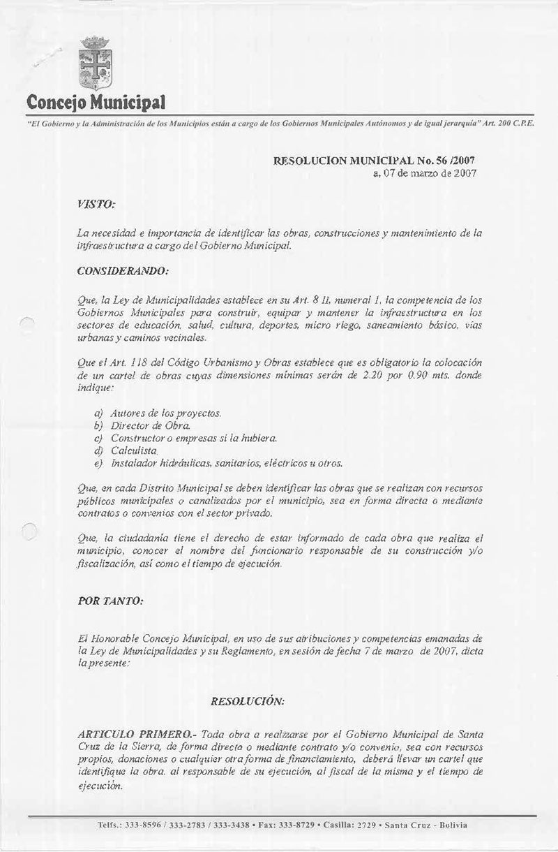 Resolución Municipal Nº 56-2007